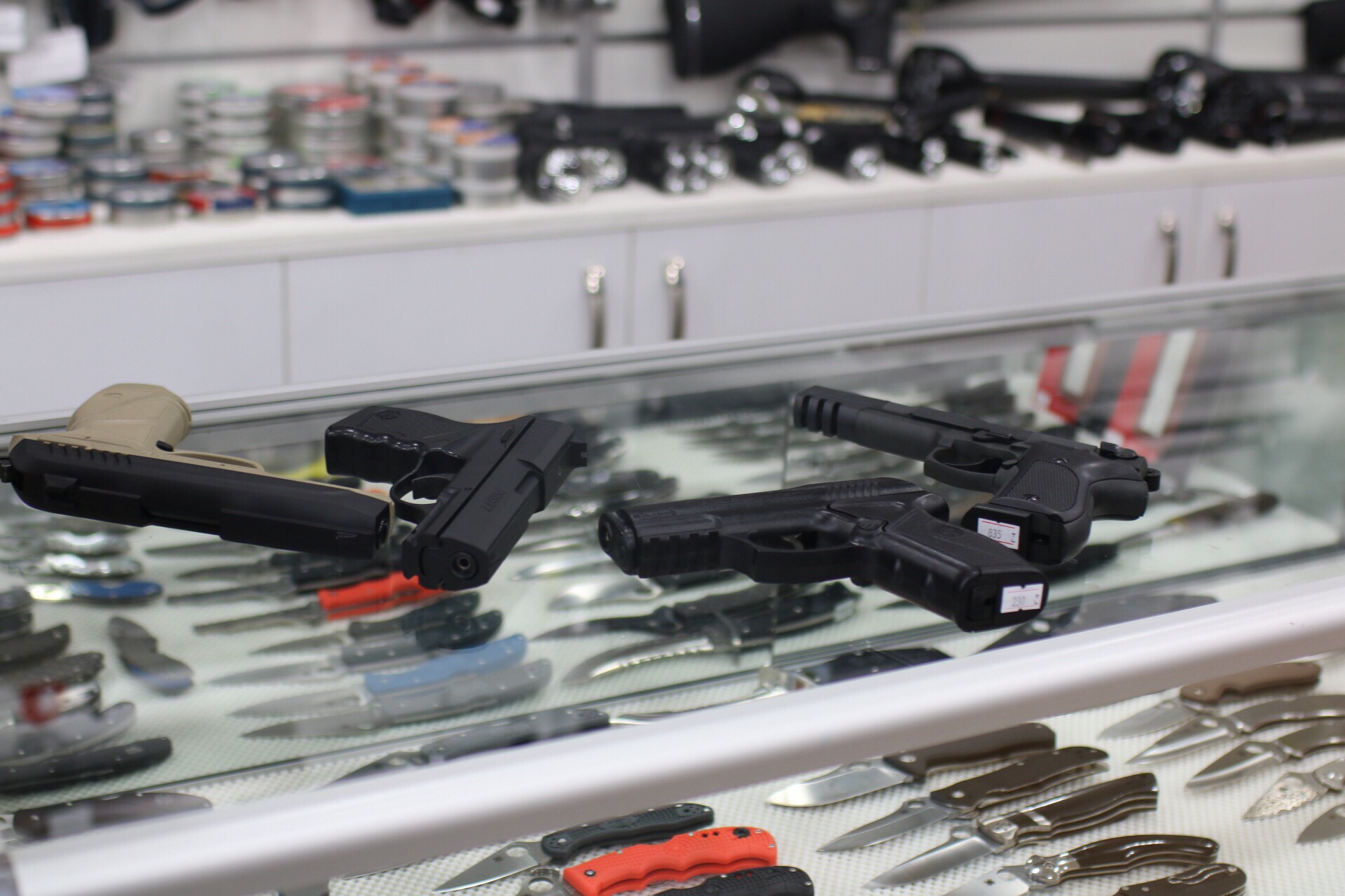 Finally, by leaving a range of side arms unattended on a counter top (the owner was outside having a smoke) you can teach people to both steal and shoot.