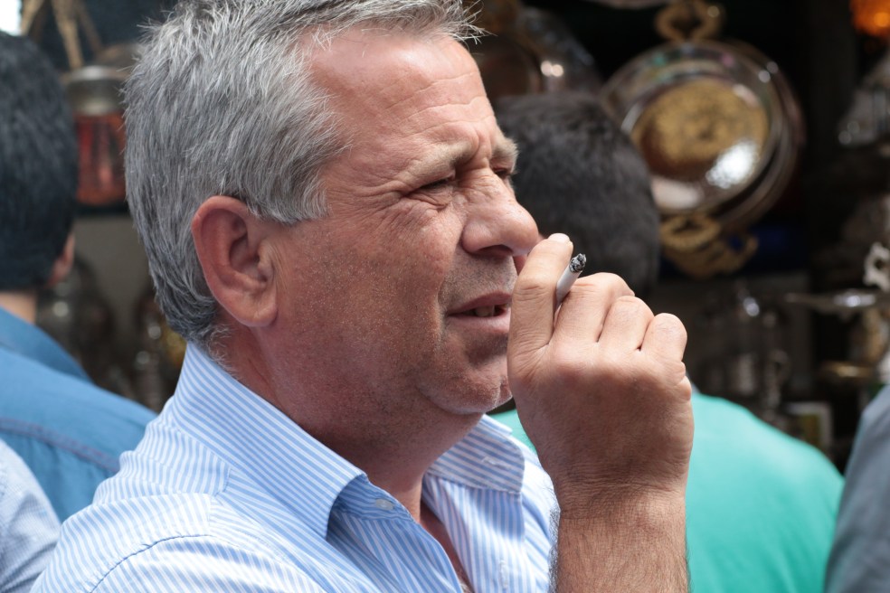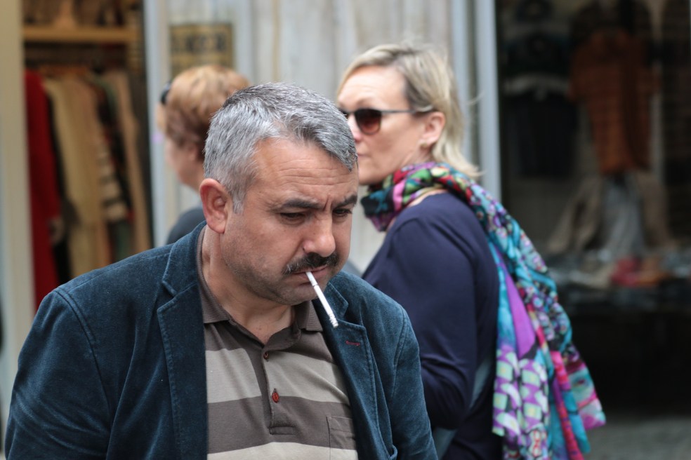 Turkey and tobacco seem made for each other. The drink of choice is tea, drinking tea is always accompanied by smoking. Talking and smoking go well together, standing outside your shop and smoking are made for each other. It’s OK to smoke whilst sitting or standing, particularly whilst preparing the take-away food in your stall. Of course nothing fills the spaces of your quiet contemplative moments like good, strong Turkish tobacco.